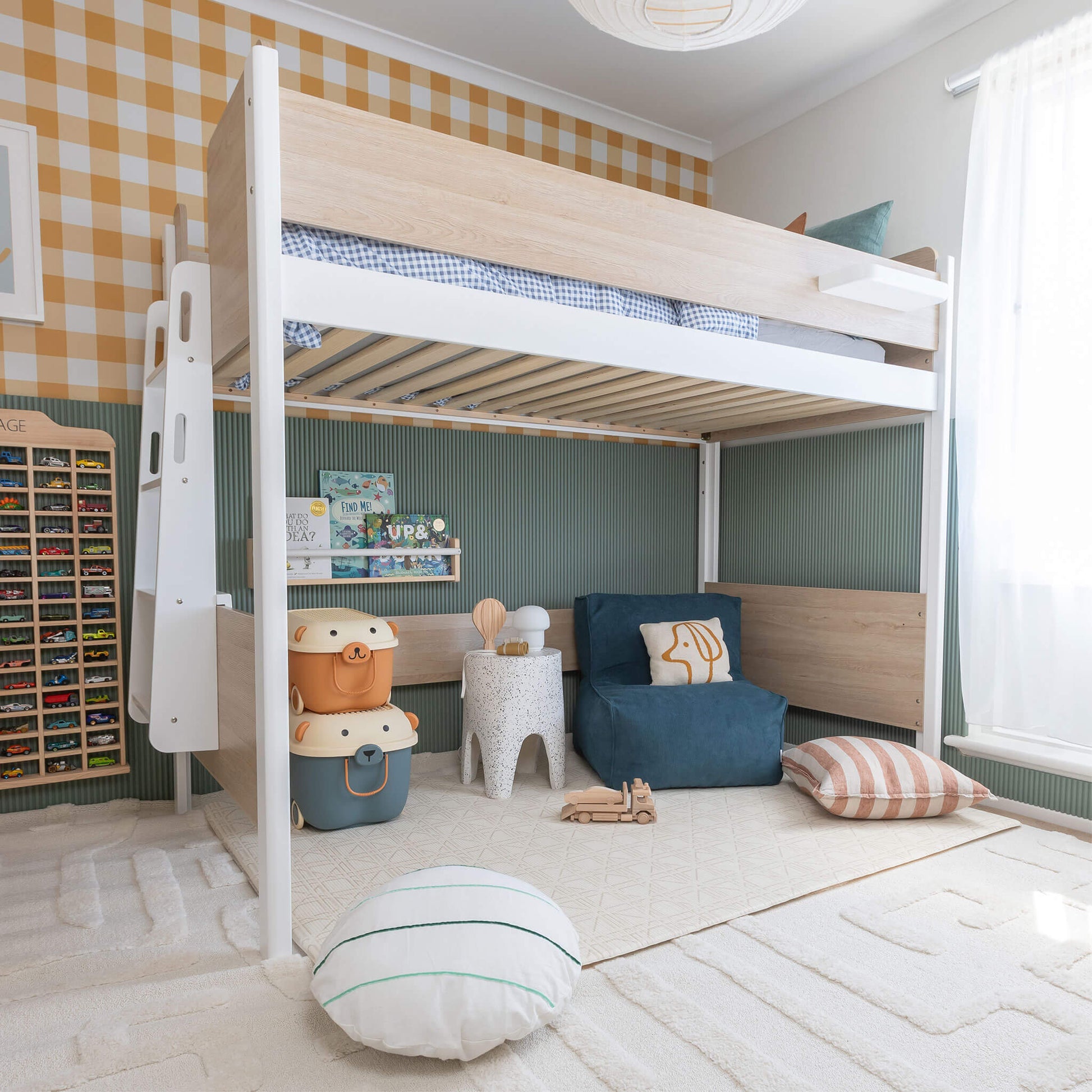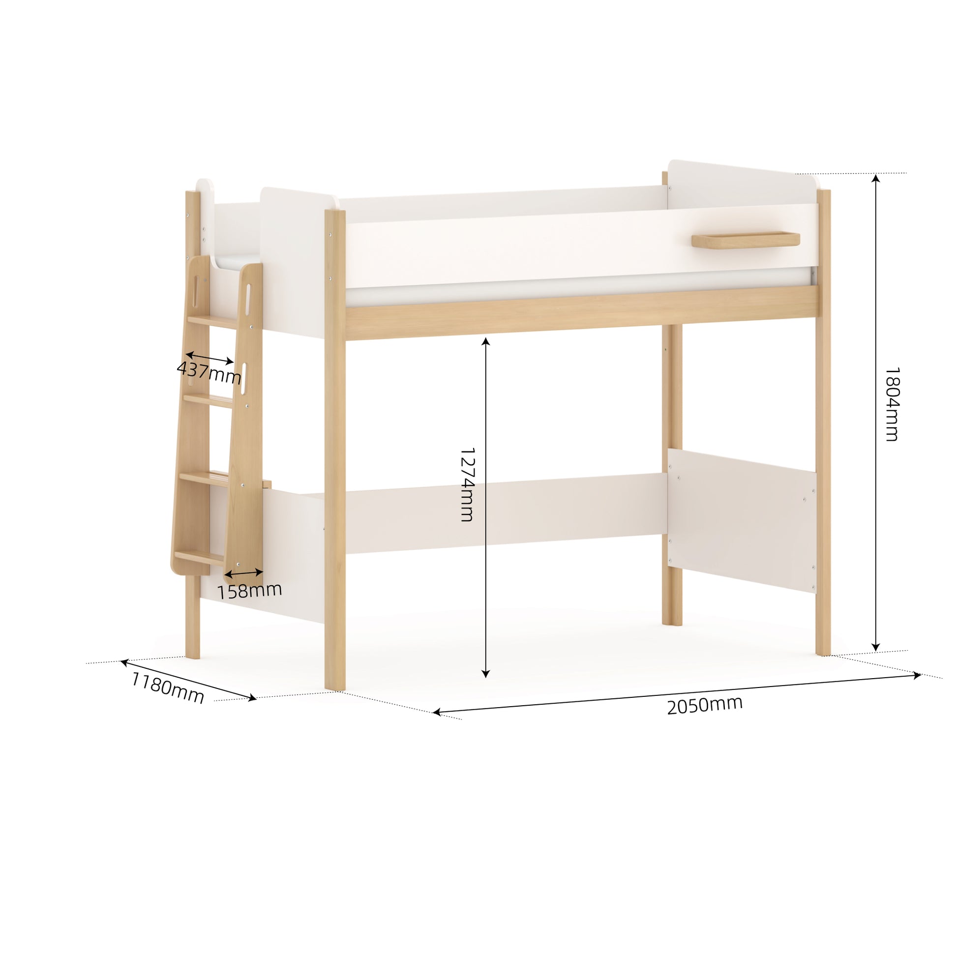 The Natty King Single Loft Bed features a contemporary two-tone design. It's ideal for Scandinavian-inspired interiors and includes a handy little shelf to keep items close by. The ladder is compact to take up minimal floor space.