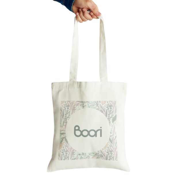 Meet the Boori Tote Bag, your perfect everyday companion! Made from durable polyester-cotton canvas, this stylish and practical bag features UV printing on both sides, showcasing the Boori logo and a beautiful leaf and floral design. Its handy size is ideal for shopping trips, errands, or casual outings, offering both functionality and flair. Lightweight, sturdy, and eco-chic, the Boori Tote Bag is designed to make your day easier while keeping you on trend. Carry it with pride and add a touch of nature-inspired elegance to your routine!