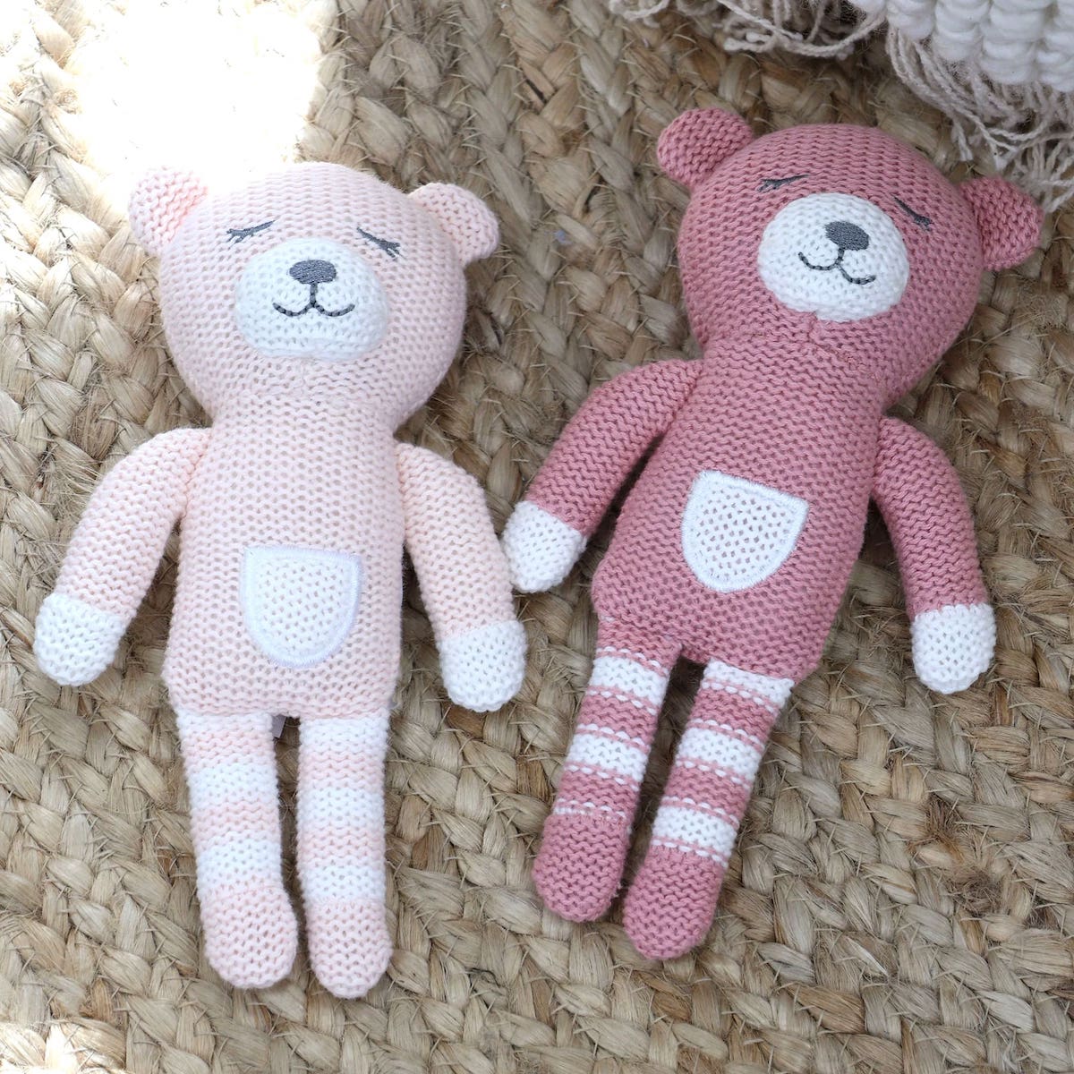 Little ones will delight in Bubba Blue's cute knitted bear rattle toys. Crafted with a soft knit texture in a stylish colour palette, they feature a gentle rattle sound to stimulate your child�÷??s senses. Long arms and legs provide easy grip for little hands.