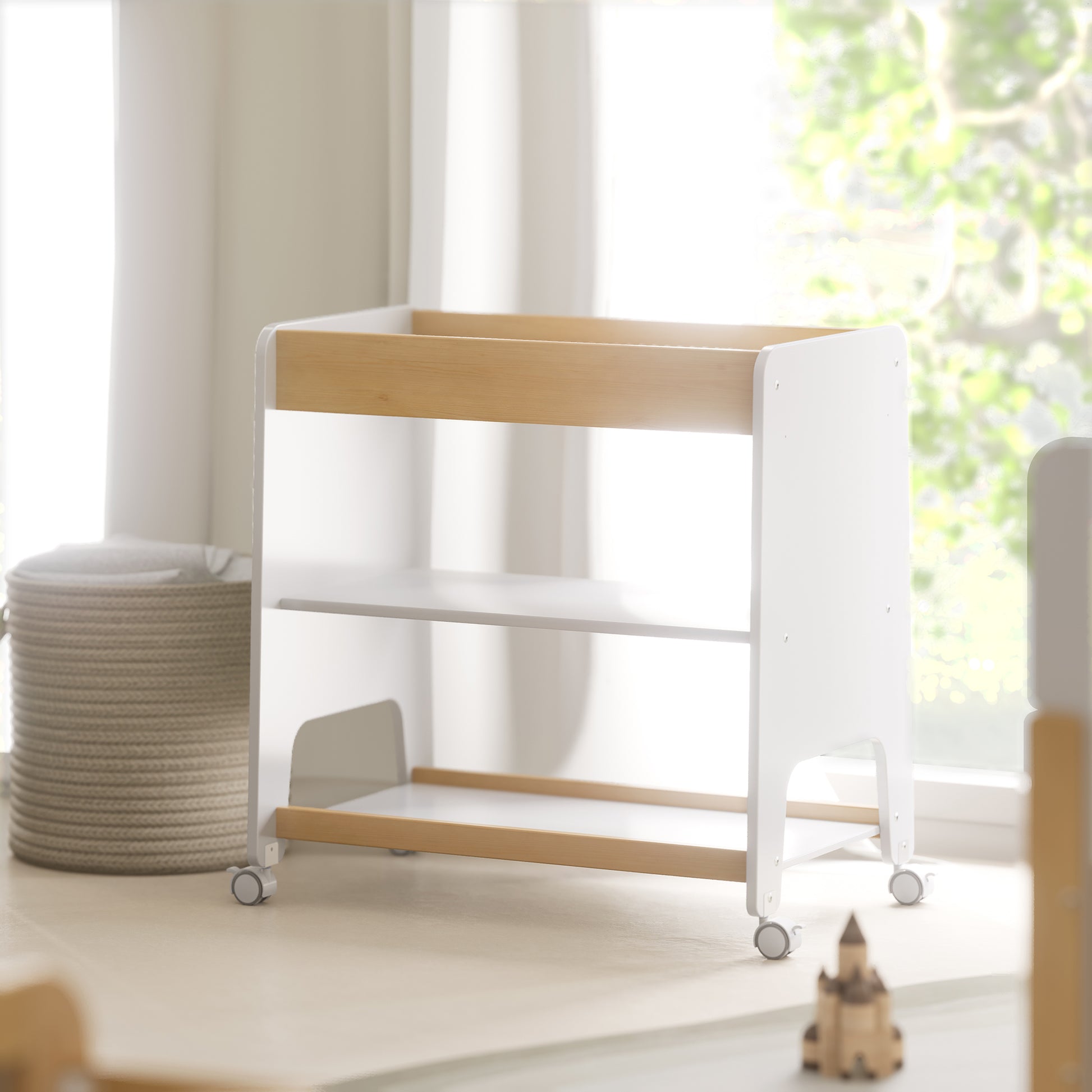 The Corindi 3 Tier Changer offers a practical and convenient solution for nappy changes and storage. Made from a combination of sustainably sourced Australian Araucaria timber and engineered wood, it features a sturdy top changing shelf and two handy storage shelves underneath, perfect for keeping nappies, wipes, and baby essentials within easy reach. Four wheels, two of which are lockable, allow you to move the changer easily from room to room while keeping it secure when in place. Comes with a change pad.