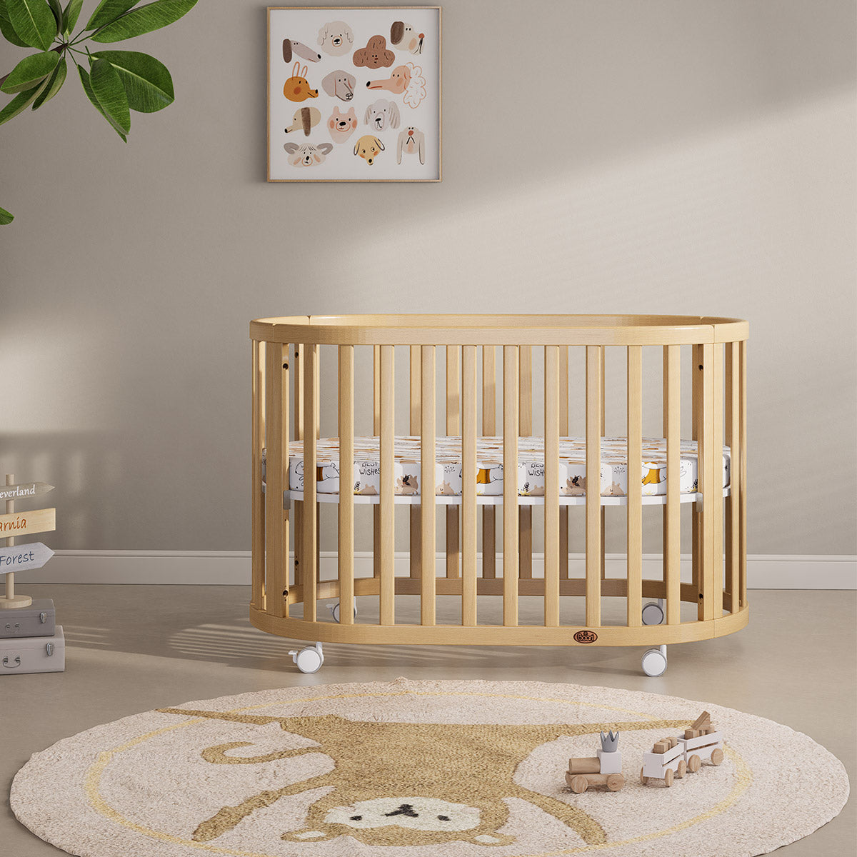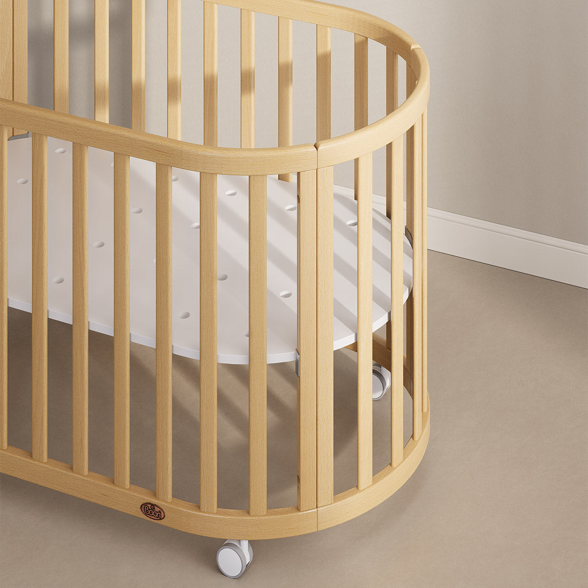Create a tranquil space for your little one with our Eden Oval Cot. Expertly crafted from sustainable solid wood into a soft oval shape, this round cot offers a unique alternative to traditional cot designs.