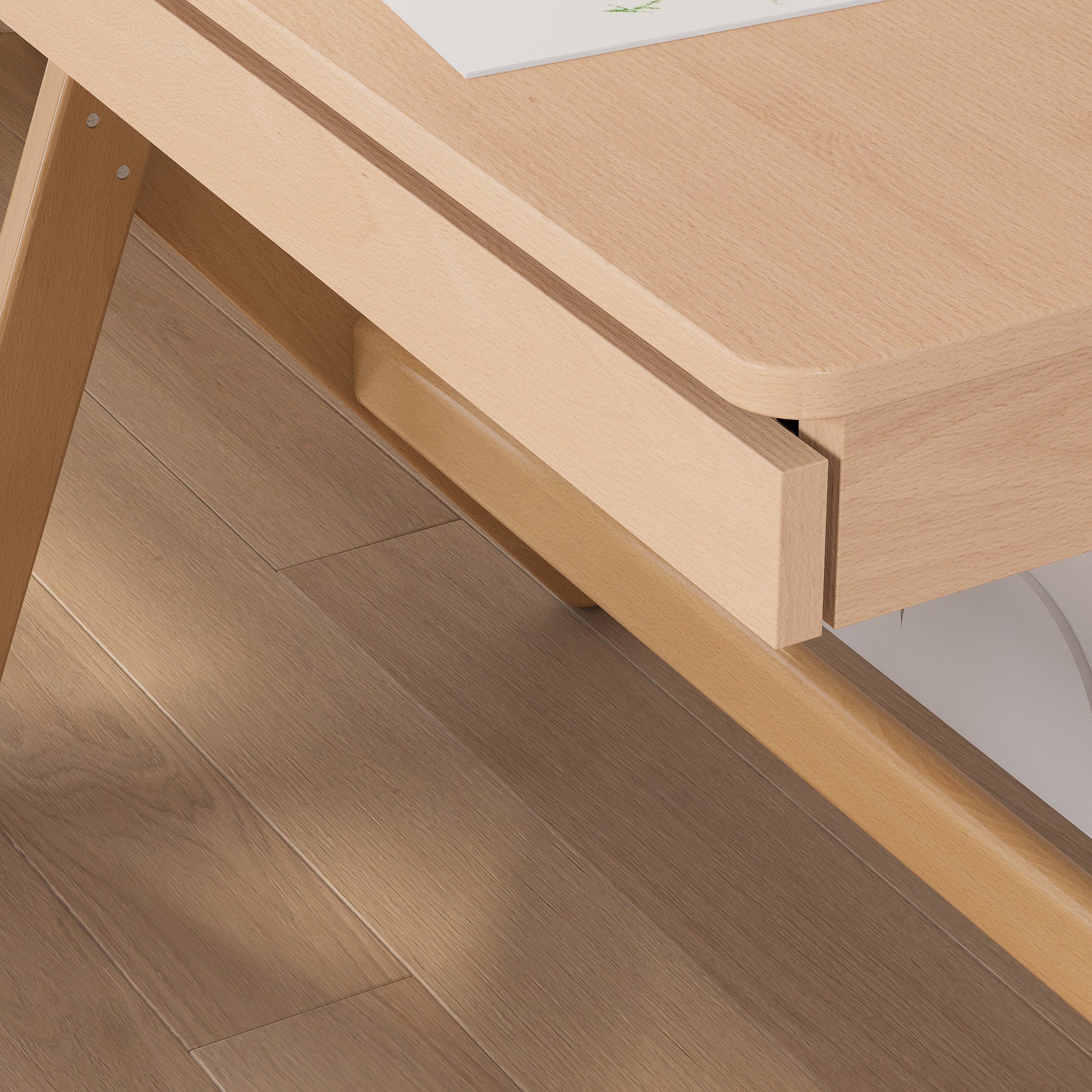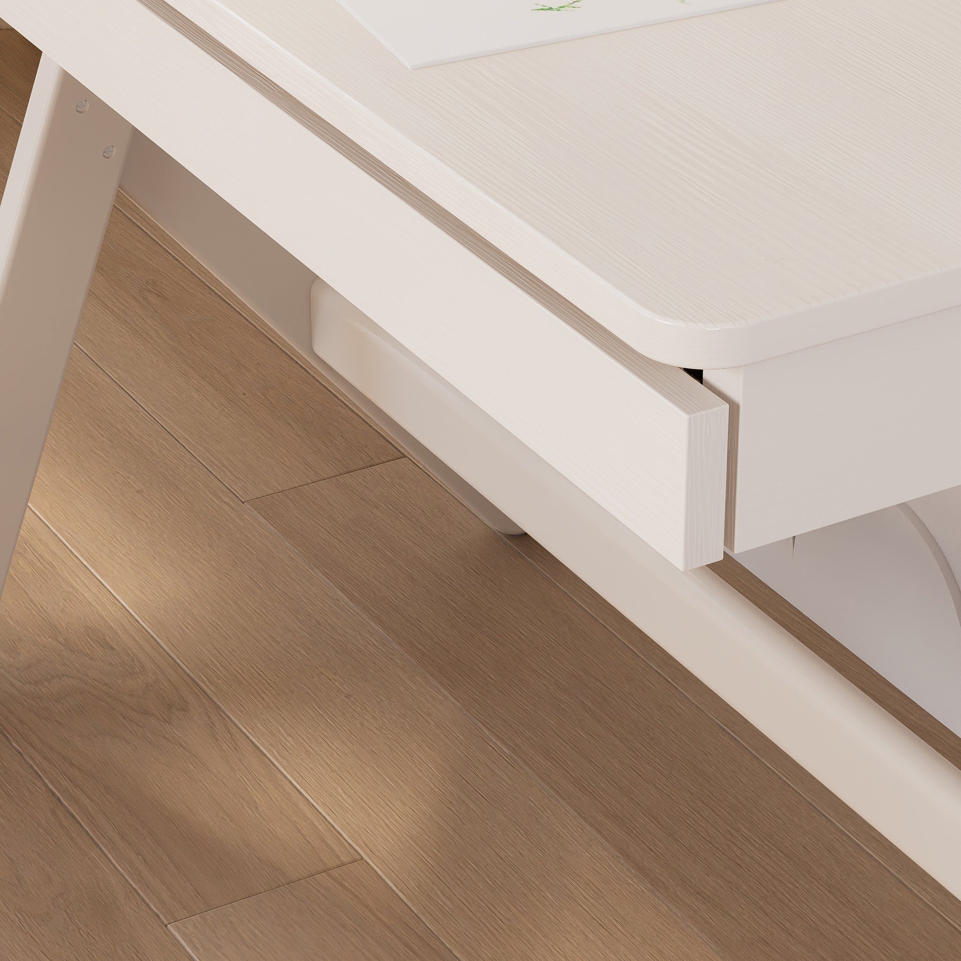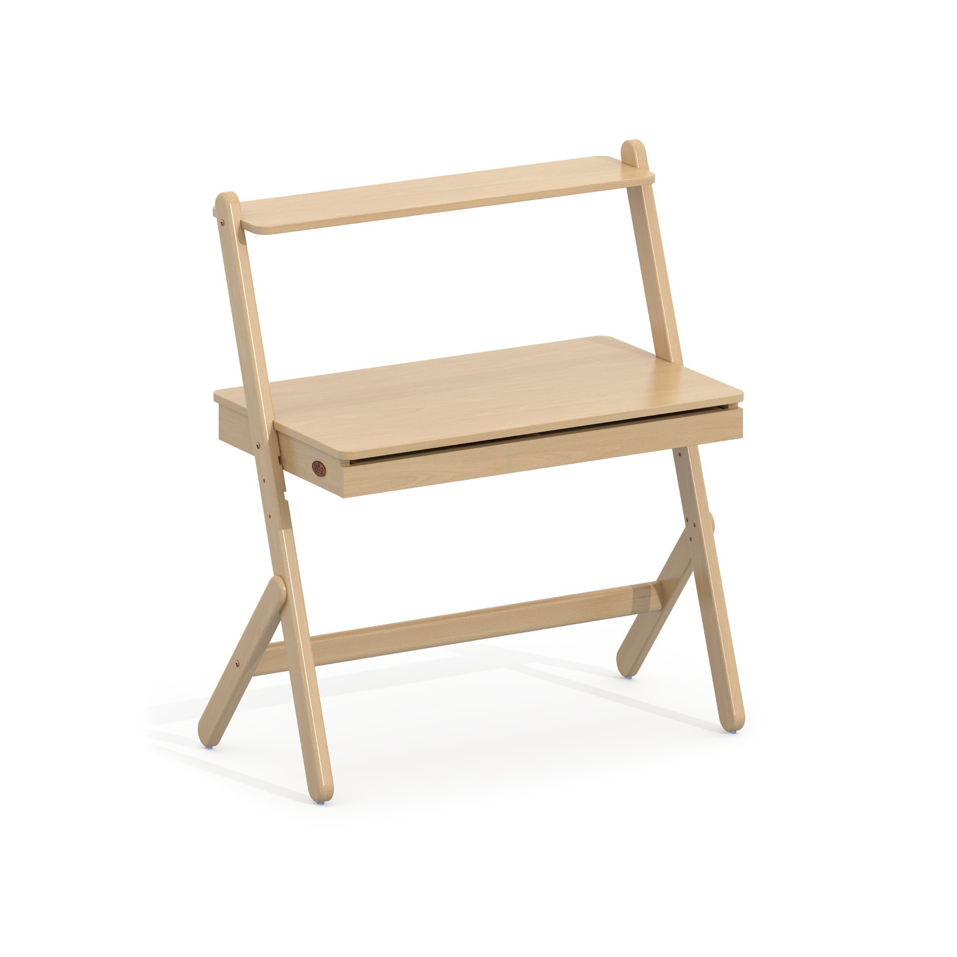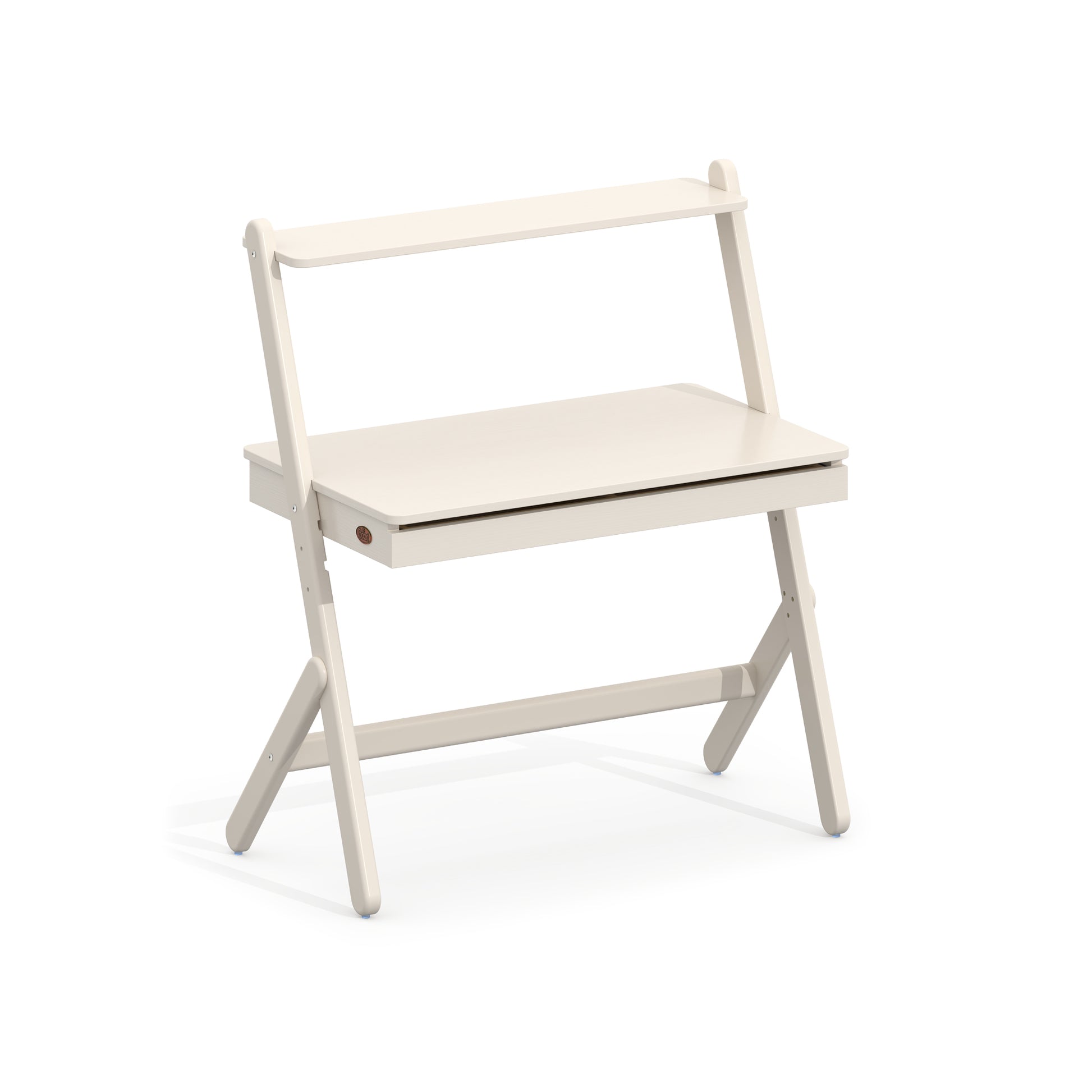The desk includes a built-in storage shelf and a slide-out drawer with two compartments to help keep essentials organised and within reach. Designed to grow with your needs, the desk can be assembled at three adjustable height levels: 61cm, 68cm, or 75cm, ensuring flexibility for users of different ages.