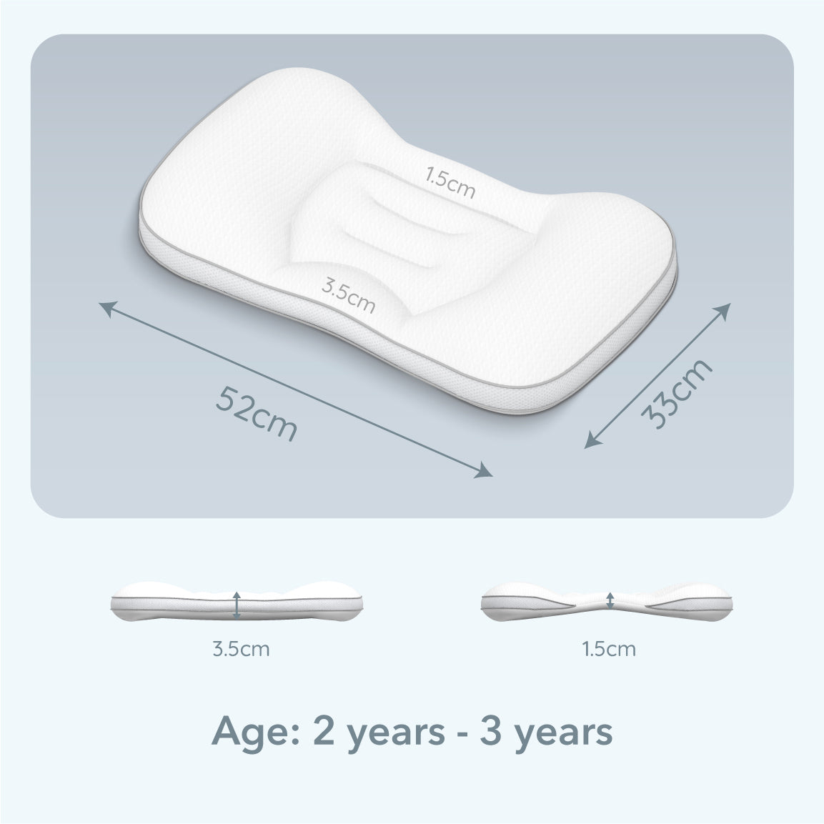 Designed with airflow and safety in mind, this pillow remains breathable, helping reduce overheating through the night. A zip-off pillowcase is included, and both the pillow and the case are machine washable for easy cleaning and everyday convenience. Thoughtfully crafted, supportive, and practical, it’s the perfect transition pillow for growing toddlers.