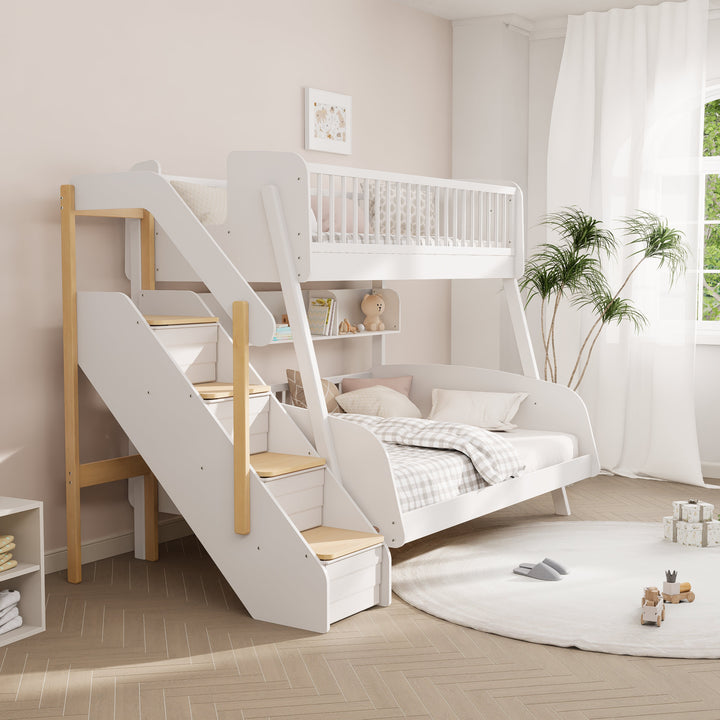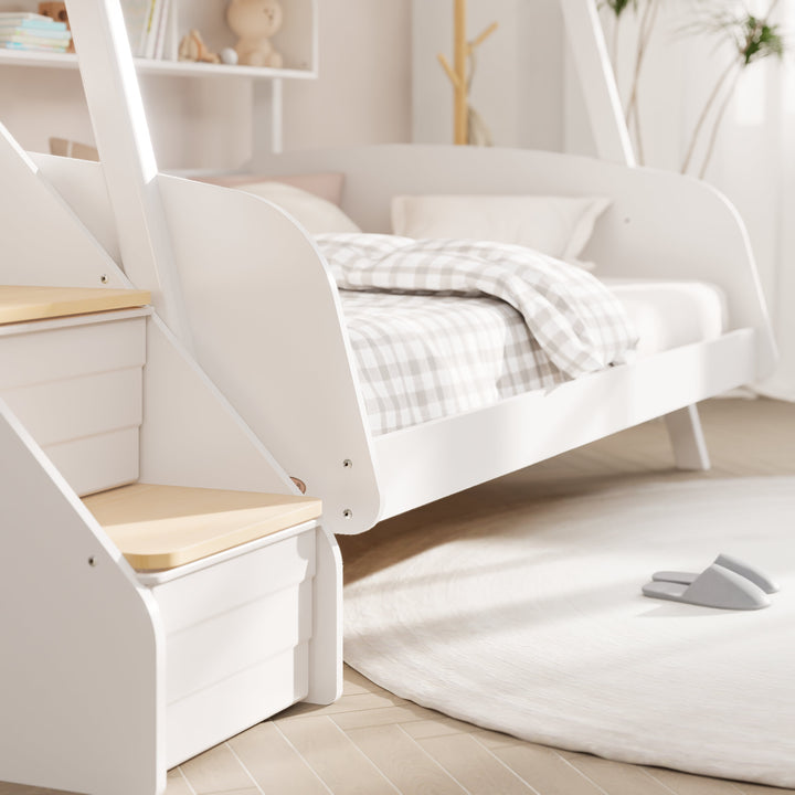The Matilda Maxi Bunk Bed with Storage Staircase is the perfect space-saving solution for families, offering a single bed on top and a double on the bottom to provide ample sleeping space.
