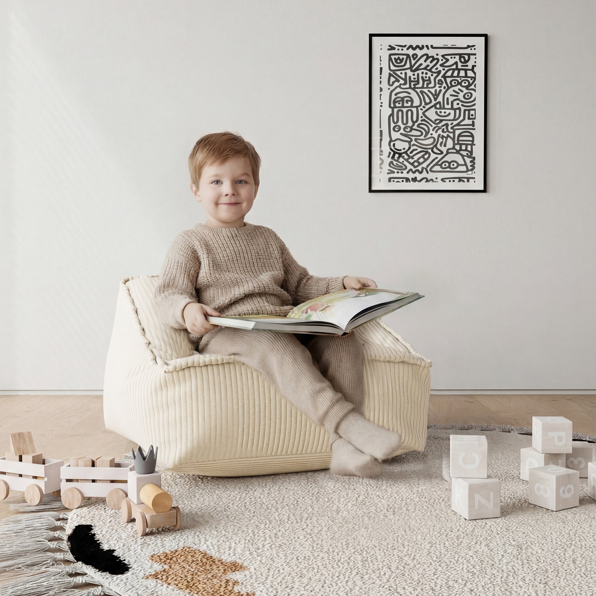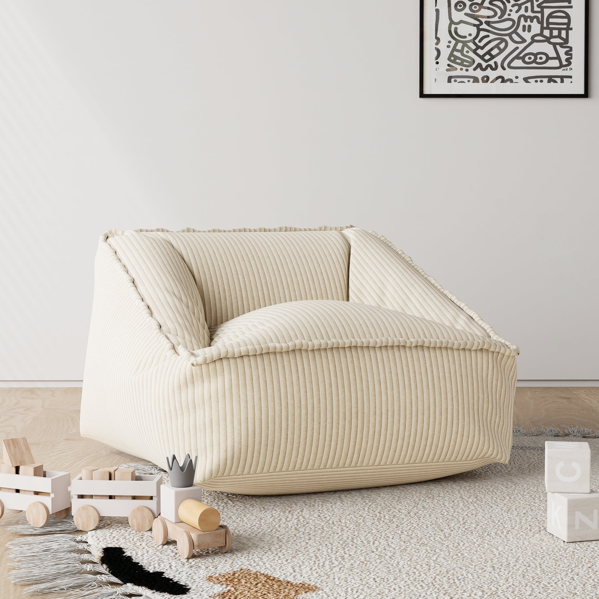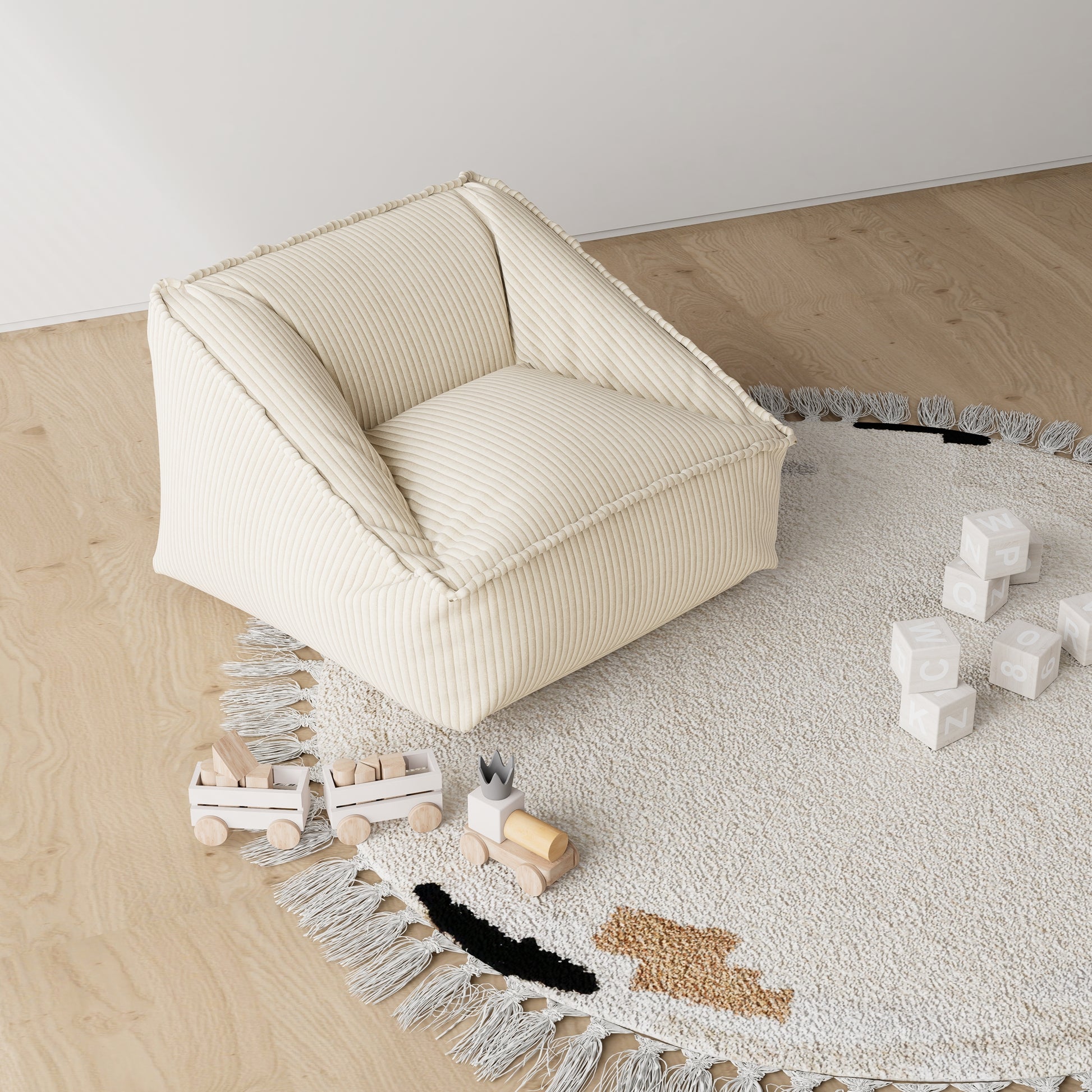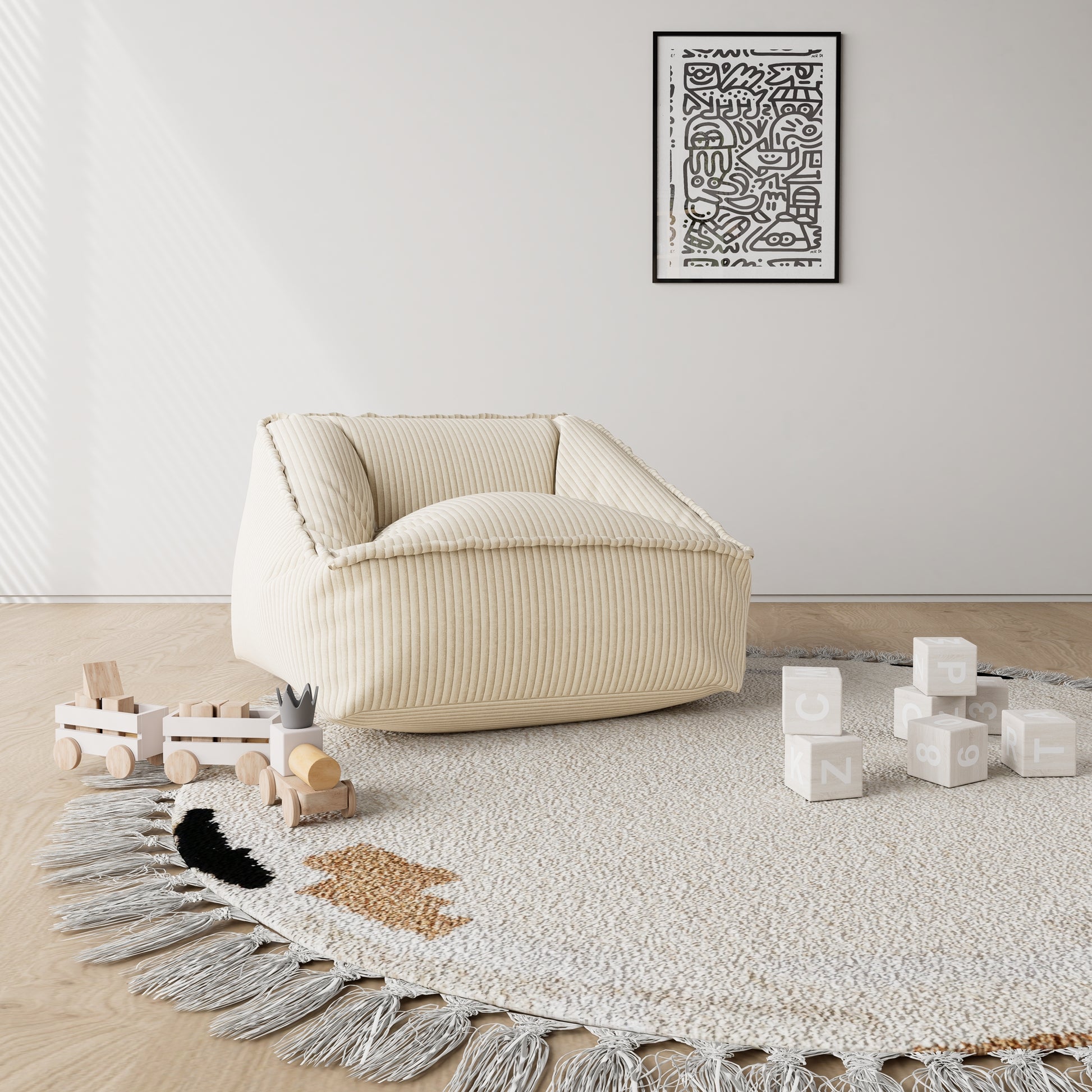 - The neutral beige tone and playful shape make it a perfect fit for playrooms, bedrooms, or shared family living spaces.