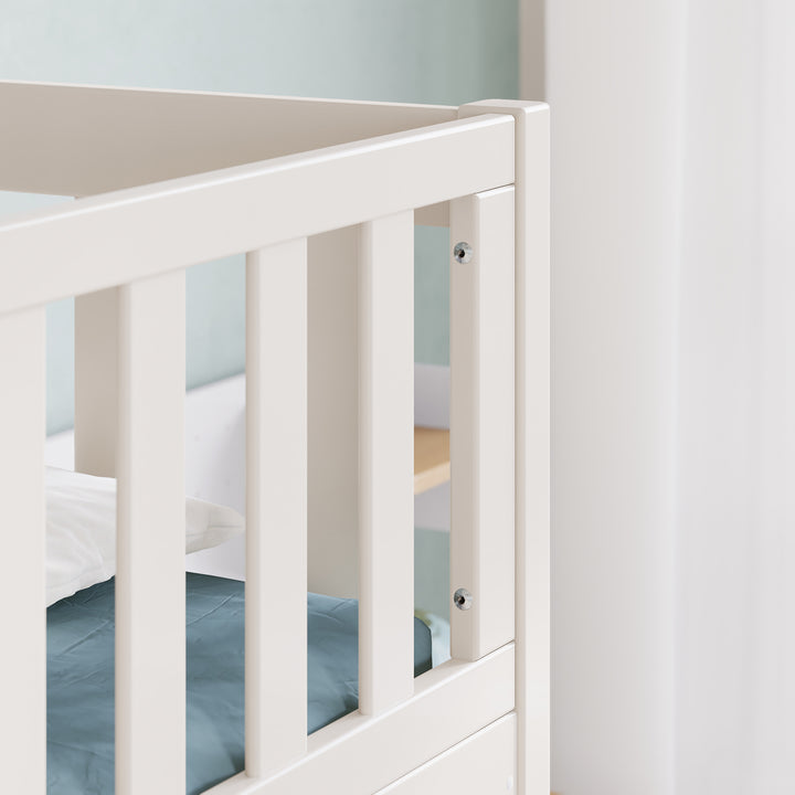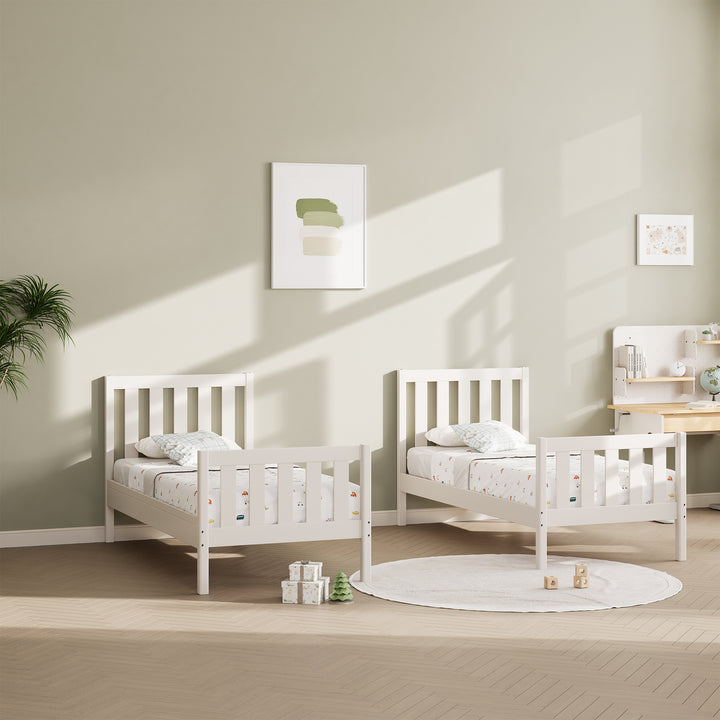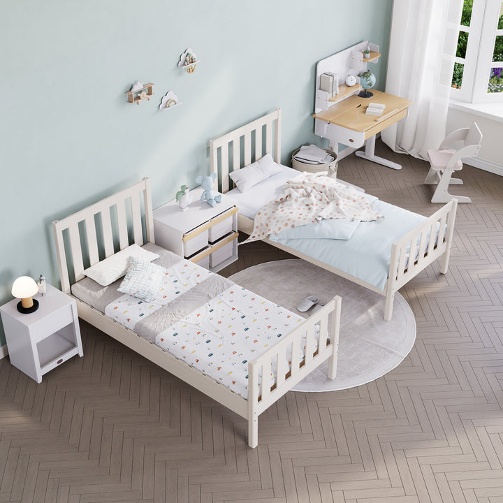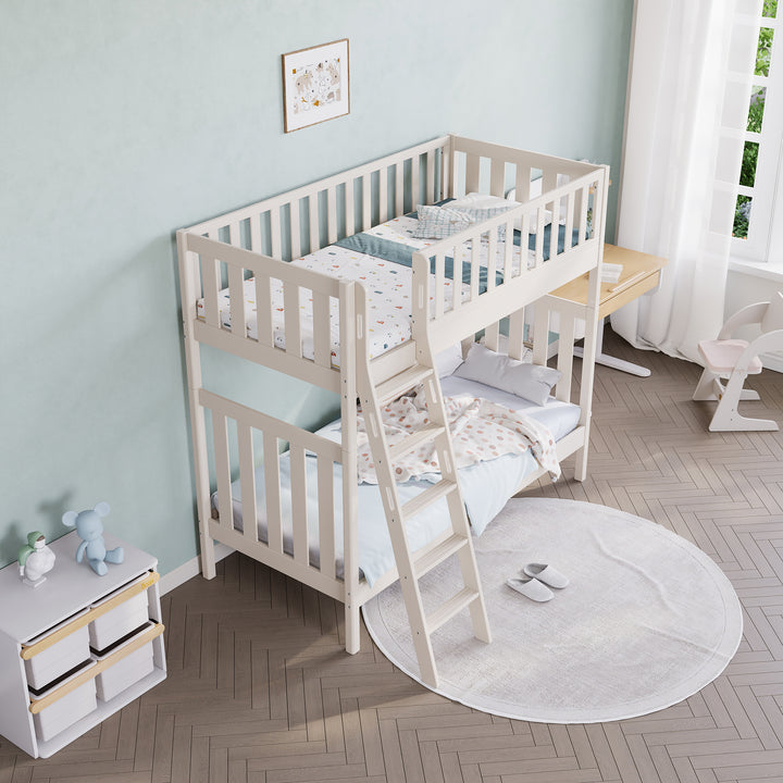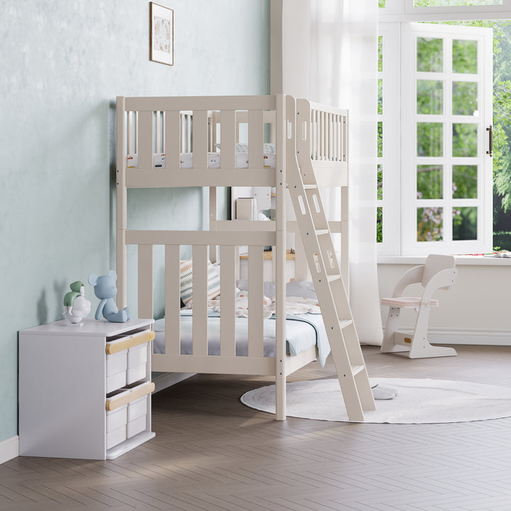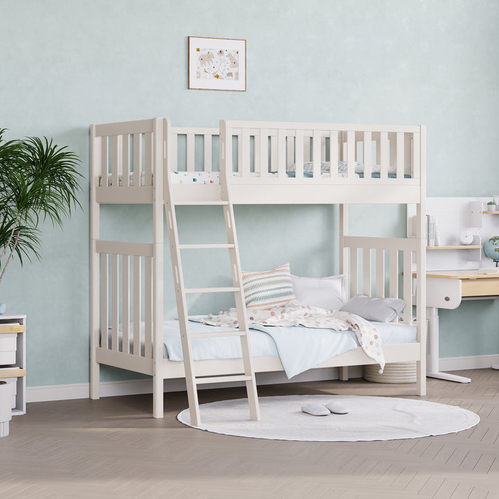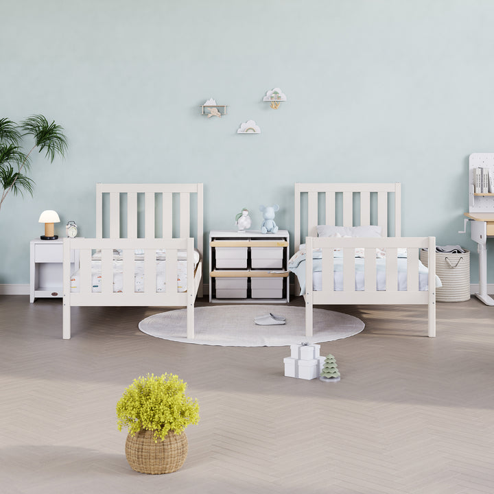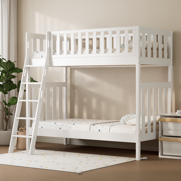 The Oslo Single Bunk Bed offers a traditional yet timeless design, perfect for growing families or shared bedrooms. With a frame crafted from solid timber and finished in a warmer hued soft white, it combines durability with a classic aesthetic that suits a range of interior styles.