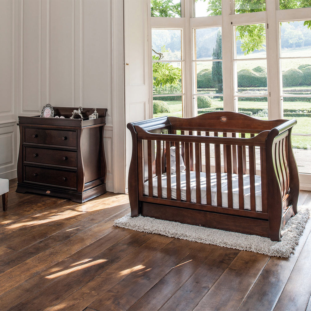 Whether you're drawn to a timeless sleigh cot for baby or contemporary Scandi and modern designs, we've got the perfect match. Crafted with FSC-certified sustainably sourced woods like Australian Araucaria and European Beach, each baby cot bed is finished with nursery-friendly paint that highlights the wood's natural beauty.
